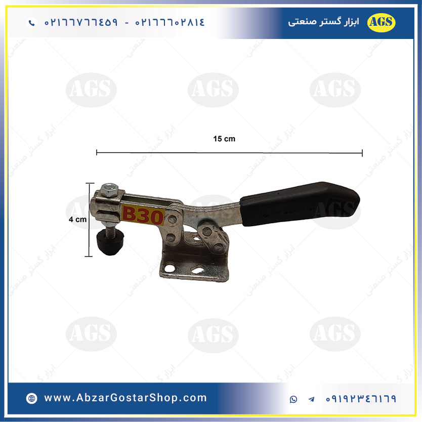 کلمپ فشاری با توجه به نوع طراحی خاص اهرمها ظرفیت نگهداری و فشار بیشتری روی قطعات دارد این نوع کلمپ نیز با توجه به نیاز کاربر شامل سایز بندی میگردد که کلمپ B30 کوچکترین سایز این گروه می باشد.