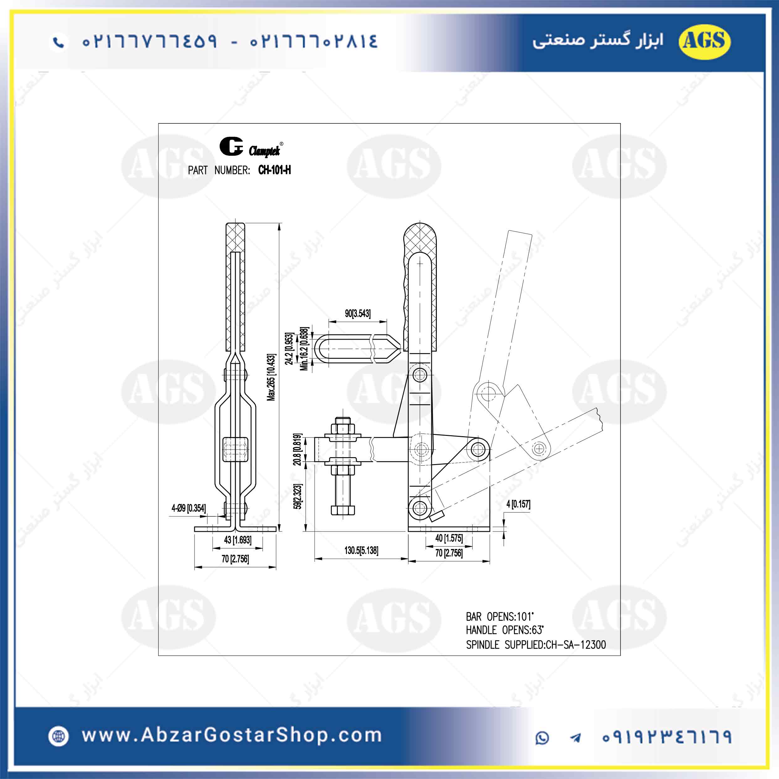 مشخصات فنی و ویژگی های کلمپ عمودی CH-101-H