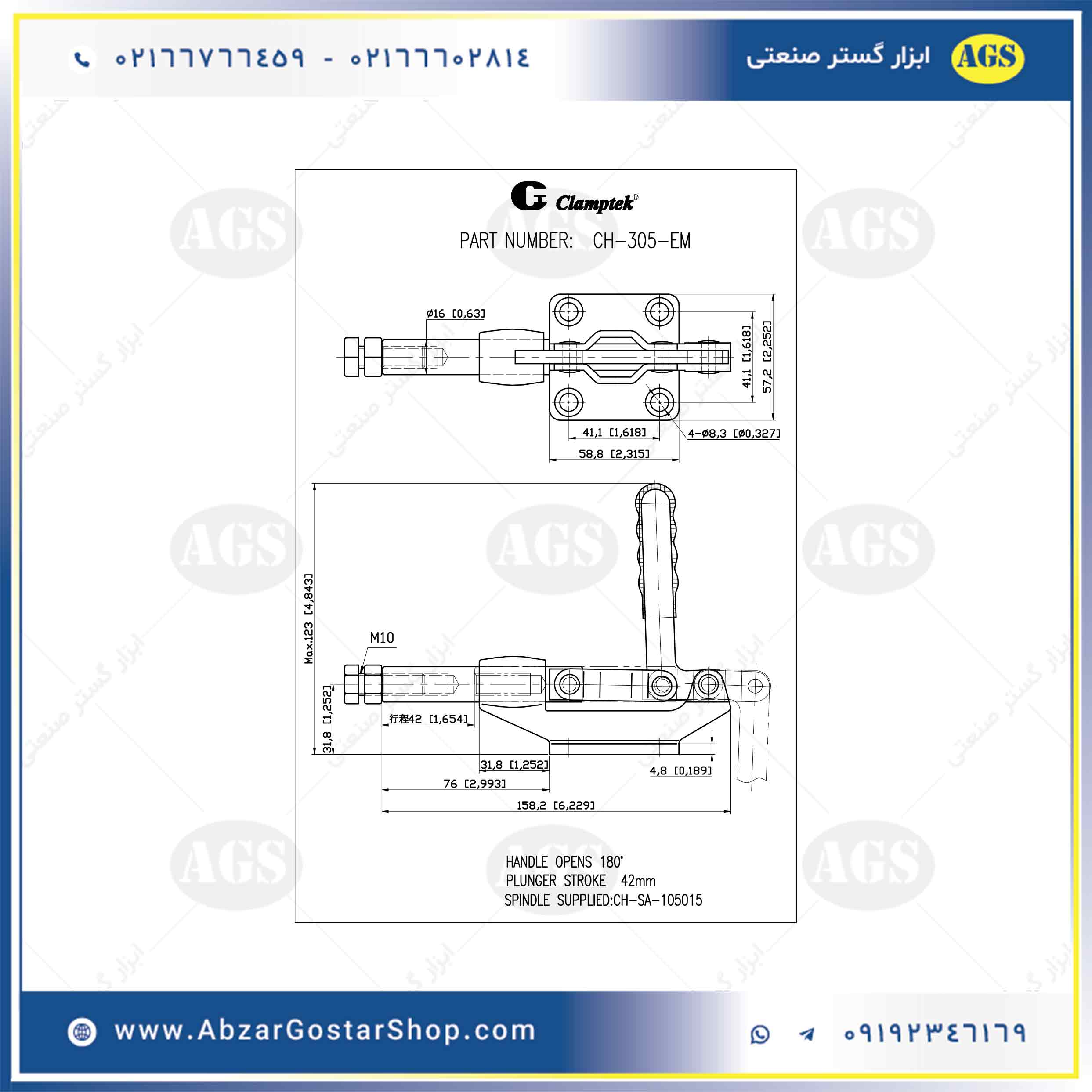 مشخصات فنی کلمپ فشاری افقی 305EM: